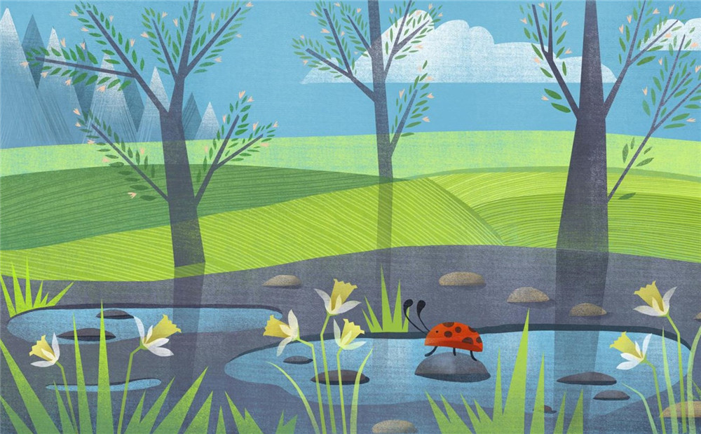 这12张壁纸按照季节的顺序,分别描绘了兔子、瓢虫和变色龙在不同季节下的不同样子,配合优美的风景美术,看起来童趣满满,用来做主题也是相当适合了。