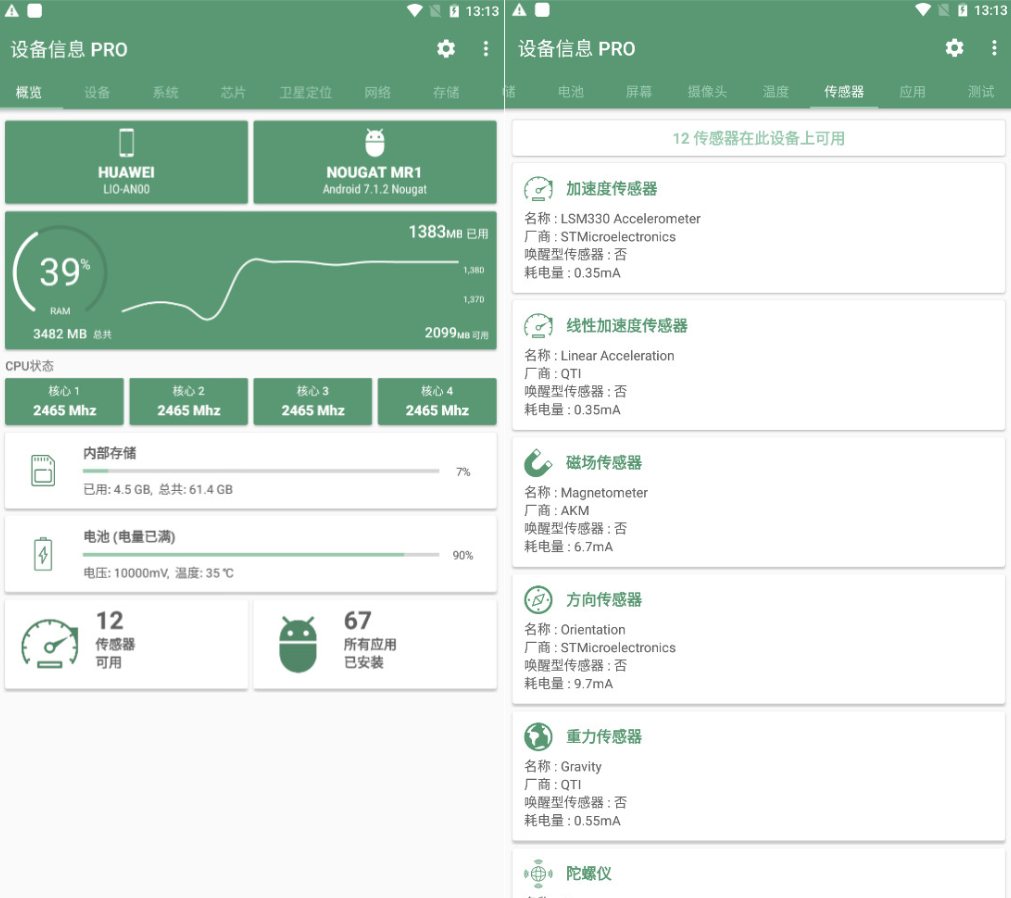 Device Info(硬件检测)作为安卓手机上面最为靠谱的硬件检测APP,能够帮助你全面的进行手机的相关硬件查询,让你了解手机上面几乎所有的硬件信息,相对于国内的安兔兔等软件来说,这款软件可能靠谱的多,感兴趣的话快来Device Info(硬件检测)!