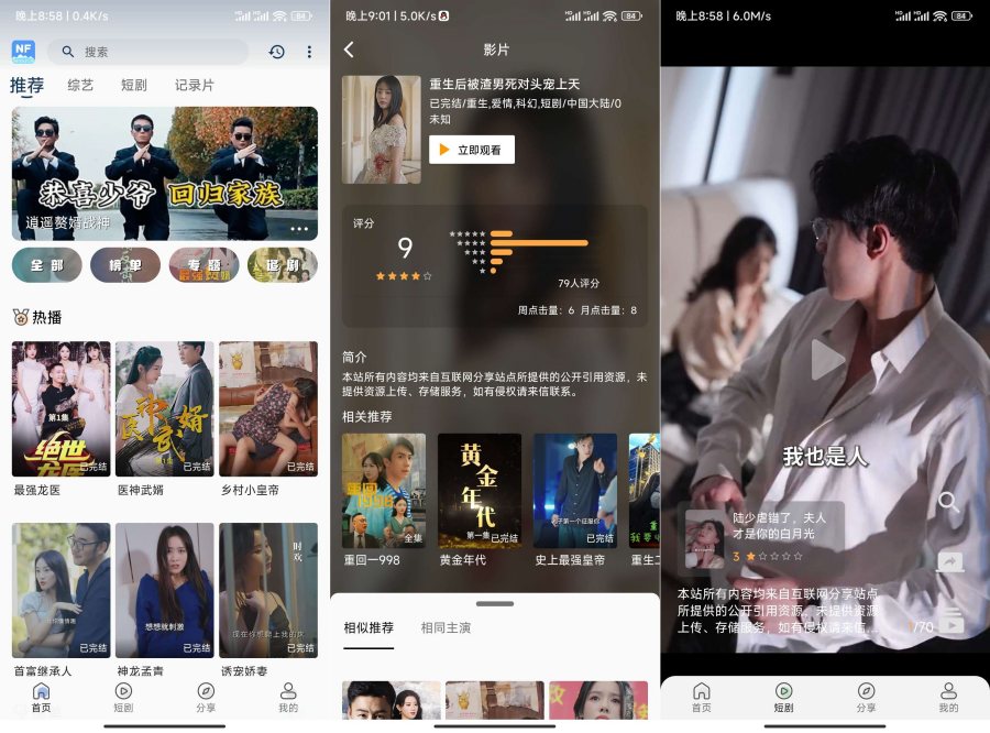包括都市情感、轻喜剧、悬疑恐怖、历史剧等不同类型的短剧视频,满足不同观看需求