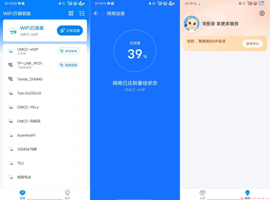 解锁永久SVIP会员,无需登陆!免ROOT显密码;去更新纯净版;免广告、连接公益Wifi、优先连接网络、百W专享热点、网络加速.
