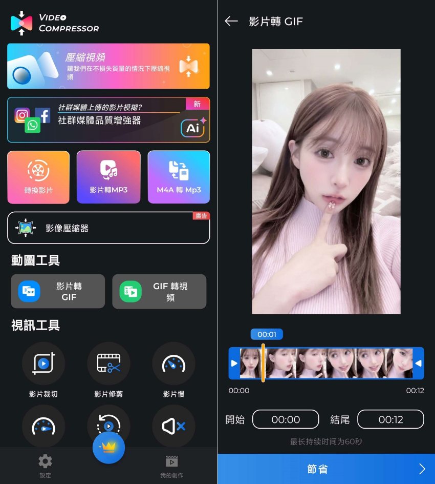 快速视频压缩器,可减小视频大小。以高质量水平压缩视频,用于压缩 MP4、MKV、AVI、MOV、3GP、FLV、MTS、MPEG、MPG、WMV、M4V、VOB 或任何其他视频文件的视频压缩器。选择自定义或默认选项来压缩视频大小。您可以将视频裁剪为您想要的任何比例。最好的视频裁剪应用程序,快速轻松地剪切视频!将视频剪切和修剪到您需要的长度。 软件截图