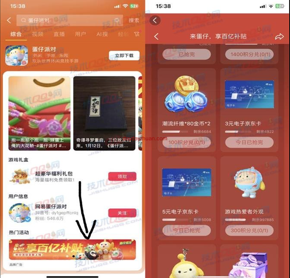 抖音蛋仔派对享百亿补贴活动,简单完成任务就能获得积分,积分可以兑换京东e卡,一共可以兑换3+5元,每天可兑换的数量有限,当天兑换完了可以第二天再兑换,天天线报网的赚友赶紧上吧。