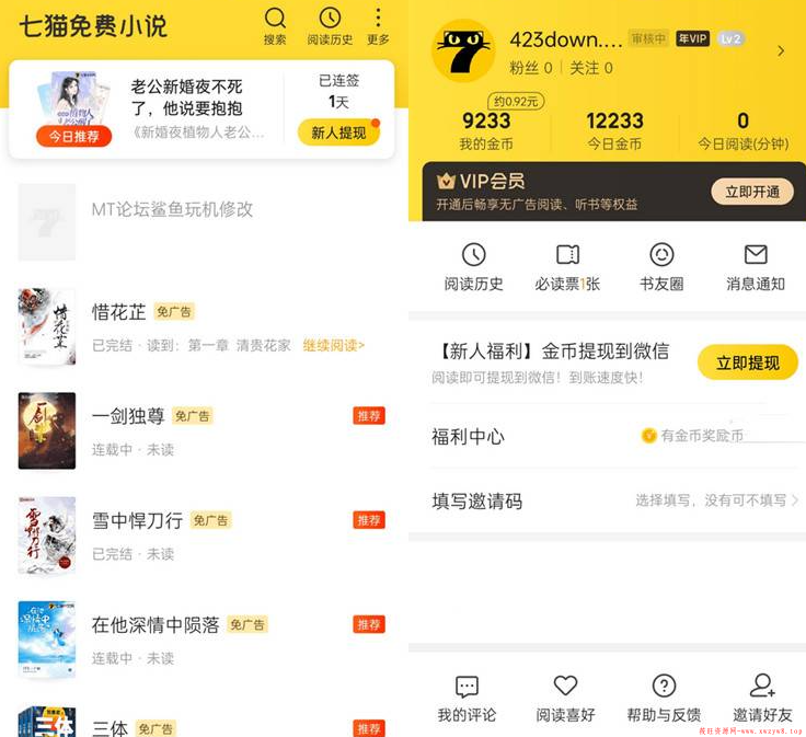 8.去除"我的"里边的横幅广告/书籍评论区上边的横幅