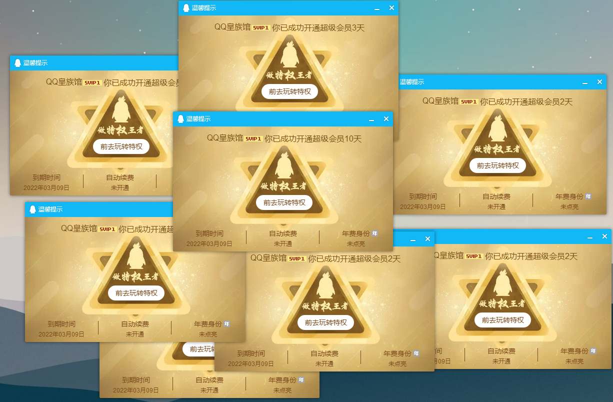 本次为大家分享的是免费领取10次QQ超级会员 亲测26天数秒到