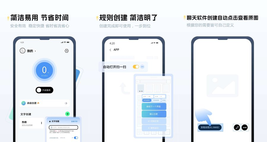 感觉比李跳跳还牛逼啊,这是一款智能的自动点击器,无任何限制,自由发挥想象,任何场景都能使用,能够按照你的需求执行,可以自动点击操作任何你想要执行的行为。相当于李跳跳的升级版,可以自己创建跳过广告的功能。跳过速度比李跳跳快很多。强烈推荐!!!