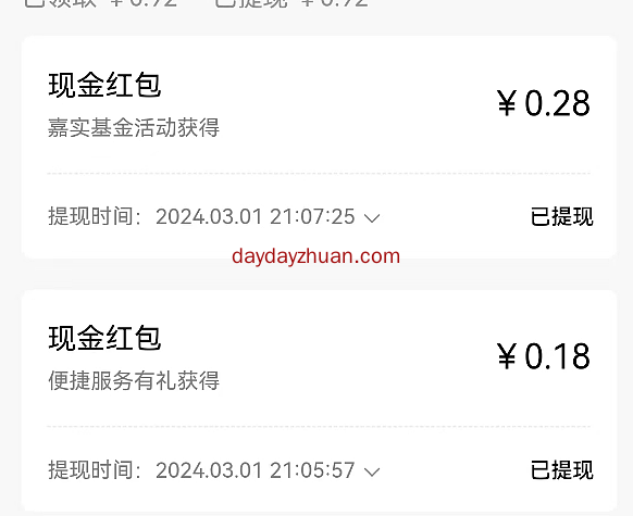 2、亲测0.18+0.28元,直接提现到银行卡。