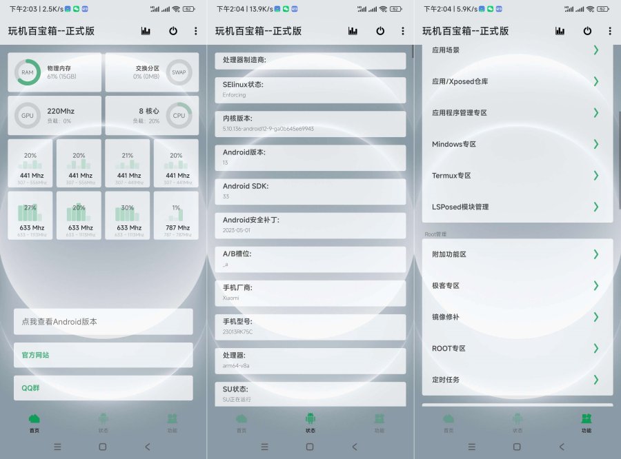 免费的手机玩机工具箱软件,专为手机爱好者提供一站式的玩机解决方案。通过该应用,用户能够轻松查看手机状态、获取系统数据信息,并提供了、系统、Root、Xposed等多种工具,满足用户各类玩机需求。软件截图