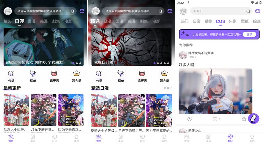 MioMio是一款一体化应用,致力于为用户提供全面的影视、动漫和漫画内容。其清新简洁的界面设计,无广告打扰,为用户打造了愉悦的浏览环境。MioMio涵盖了日漫、国漫、美漫、剧集、影视等多个分类,同时提供详尽的排行榜和节目表,方便用户迅速找到心仪的作品。 在MioMio内置了多条线路,几乎都支持蓝光极速秒播,让用户尽情畅享高清画质的观影体验。其功能齐全,满足了用户对于免费影视、动漫和漫画的多样需求。 除了丰富的内容和高速播放,MioMio还提供了强大的社区功能,成为漫迷们的聚集地。用户可以在这里交流心得、分享推荐,感受到与同好们相互交流的乐趣,实际上是漫迷的天堂。 MioMio不仅仅是一个内容聚合应用,更是一个充满温馨氛围和互动乐趣的平台,为用户带来全方位、多元化的娱乐体验。软件截图