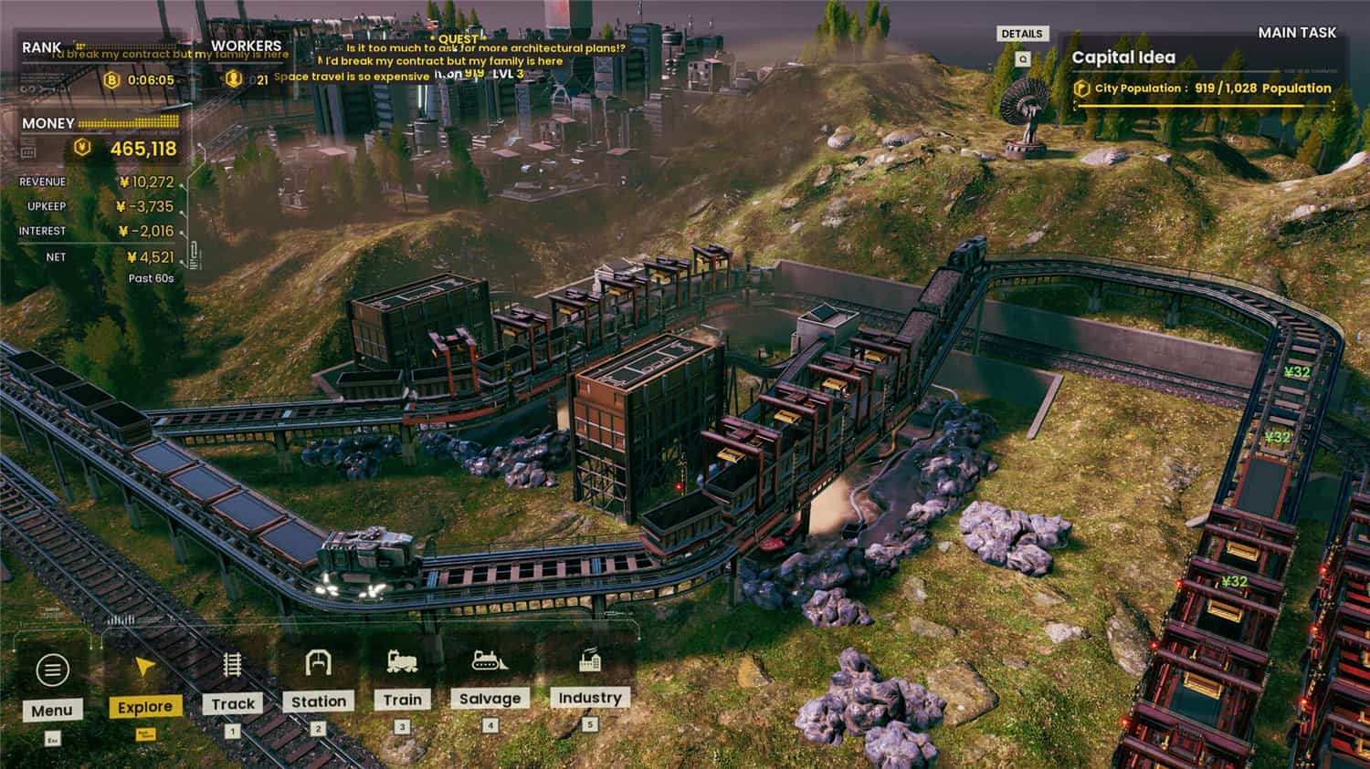 《异星铁路》是一款在外星殖民地上使用铁路来运送资源与电力工业的管理模拟游戏。作为这颗星球的管理员,你需要在一次灾难性的基础设施崩坏之后努力恢复工业生产。