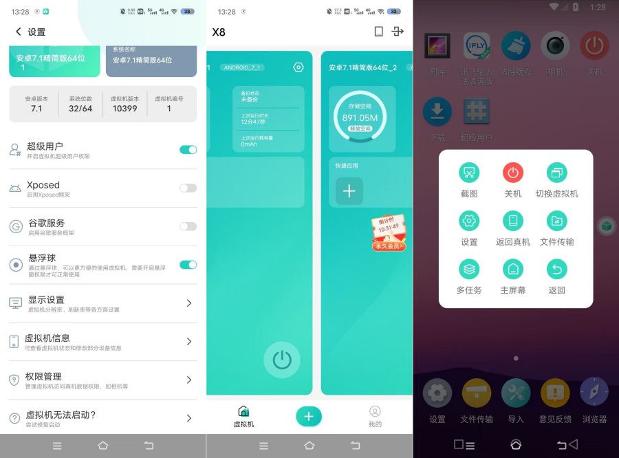 【软件名称】X8虚拟机 【软件语言】中文 【软件大小】325.13MB 【软件版本】1.2.1 【软件包名】cn.x8box.clone 【开发代号】10021 【系统版本】11 【特殊说明】需登录解锁会员 【软件简介】一款非常好用的安卓手机云存储虚拟机,让用户可以把一部手机当两部来用。只需要下载x8沙箱虚拟机即可获得一部云手机,自由进行应用分身游戏多开,和你的本地手机不会互相影响,而且稳定运行不会出现卡顿闪退的情况。