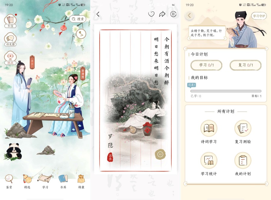 内有唐诗、宋词、文言文、古籍、诗词朗诵、飞花令等诗词学习工具,长相思、满江红等古典诗词应有尽有,不仅能够帮助广大学者和诗词爱好者秒懂古诗词之含义