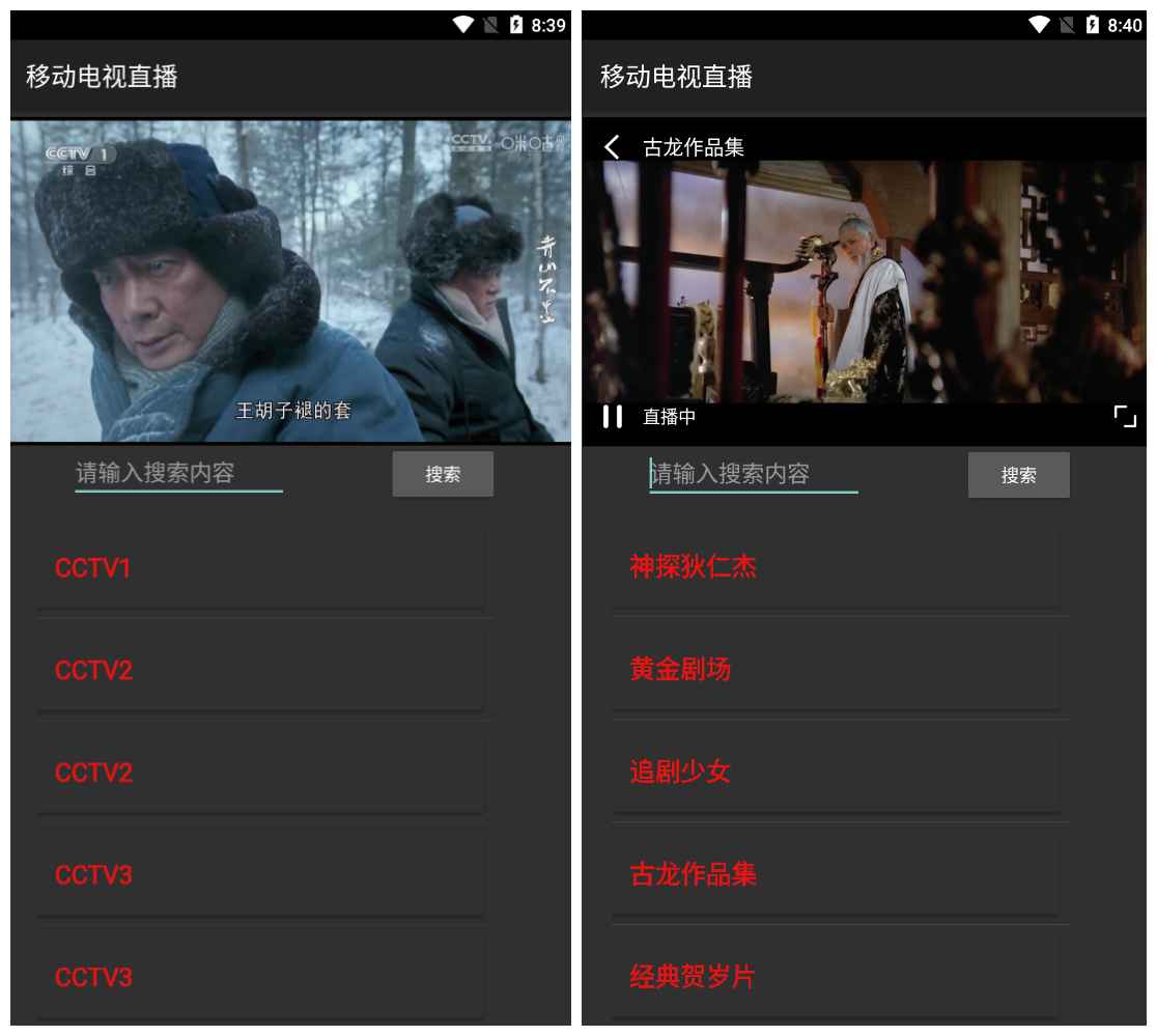 为大家分享一款安卓手机直播软件,界面很简单只有3MB体积;平时盒子直播播放器很多,但是专门为手机而打造却很少见,主要是直播二主;央视1-17系列数字频道和怀旧剧场、体育台、CHC电影、地方台和各大卫视都有;还有孩子喜欢的卡通台、影视明星专栏,包含武侠、动作、僵尸、爱情、科幻等资源;还有一些全球台,也可以直接搜索要看的内容,可以把手机当做数字电视使用。