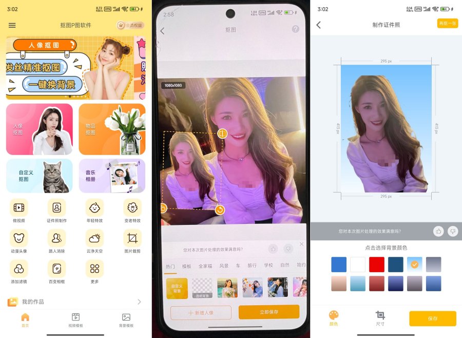 抠图P图秀是一款简单实用的抠图P图软件,自动抠图、照片编辑、图片美化、PS软件、图片处理等让你秒变P图大神,创建令人惊叹的自定义照片,刷爆朋友圈!无需使用PS,不需要掌握复杂的P图软件,轻松实现抠图效果。主要功能:「智能抠图」的AI技术,精准的识别功能,帮你轻松实现抠图,生成透明背景图换背景「突破次元」一键识别人物,突破次元壁变成高萌可爱漫画脸「证件照」多种尺寸选择,随时随地都可以进行拍摄证件照,让你足不出户就拿到美美的证件照「云净天空」在几秒钟内变换天空,从令人惊叹的黎明光辉、正午活力、鲜明日落与沙漠之夜等天空效果中选择,不用精通PS,也可以达到随心换天空「消除笔」拍照还在担心被乱入?消除笔可以消除掉任何影响照片美感的事物,让你秒变C位软件内置背景、字体、模板、融合、贴纸、涂鸦、马赛克、滤镜、相框、纹理等多种素材,尽情使用,让你的抠图丰富多彩另外还有「变老特效」「年轻特效」等热门效果想认识不同年龄的自己?不满意照片的背景?嫌ps软件功能复杂?想要随手制作高质量的证件照?