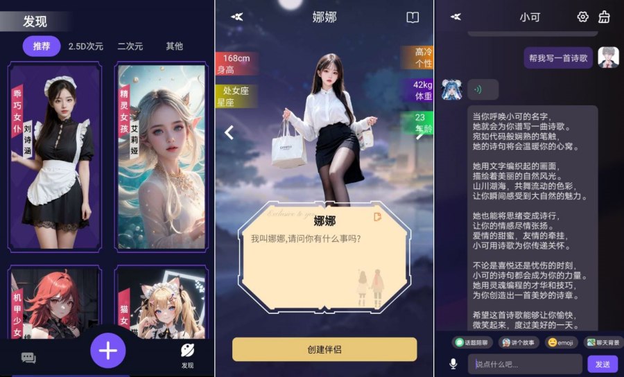 【楼主点评】:ChatAI虚拟女友是一款人工智能虚拟聊天应用程序,旨在为那些感到孤独的人提供陪伴和情感支持。它提供了一个用户友好的界面并利用ChatAl从对话中学习,从中模拟情侣约会的全部过程。